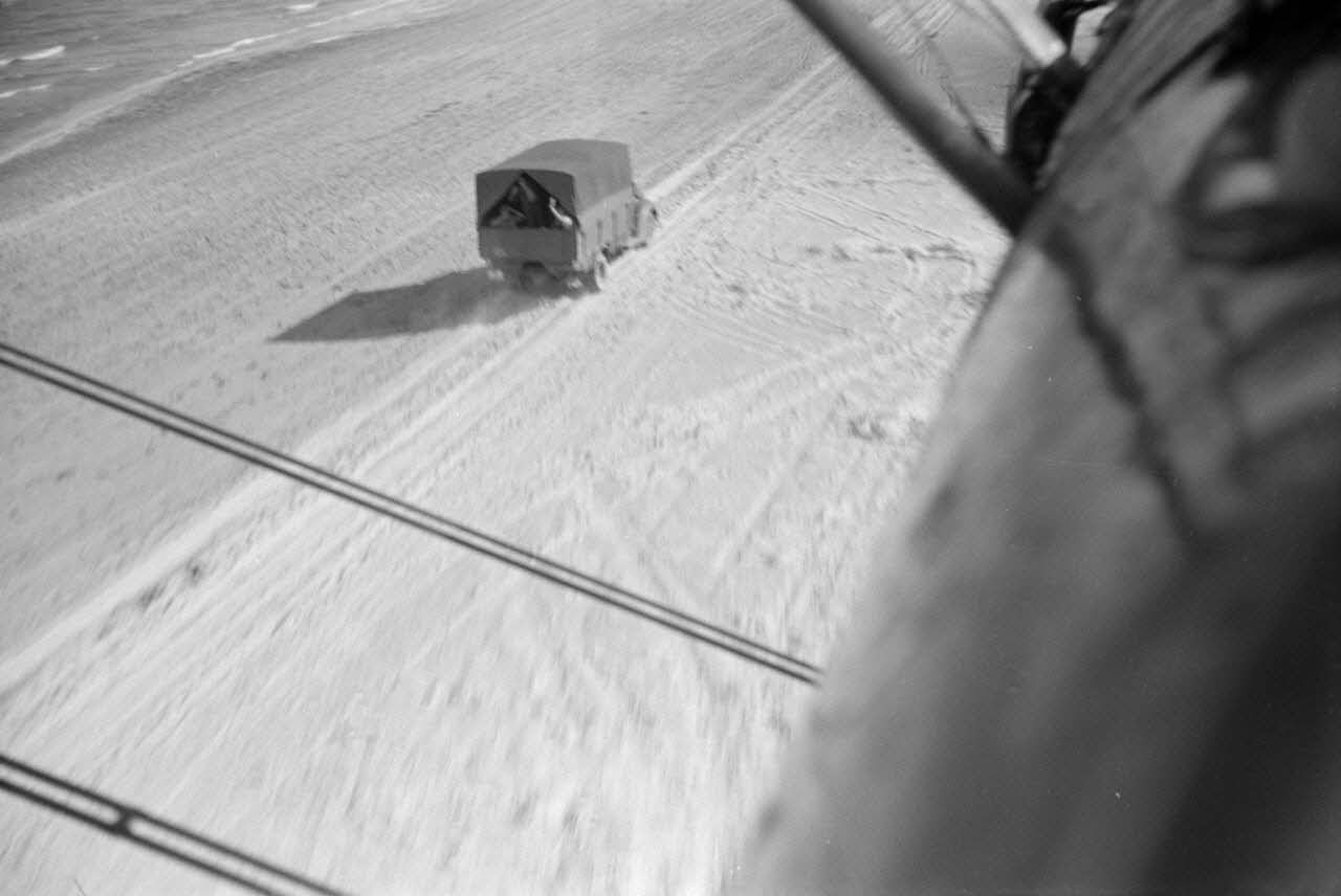 A proximité du terrain de Mamaia, un camion photographié depuis un biplan.