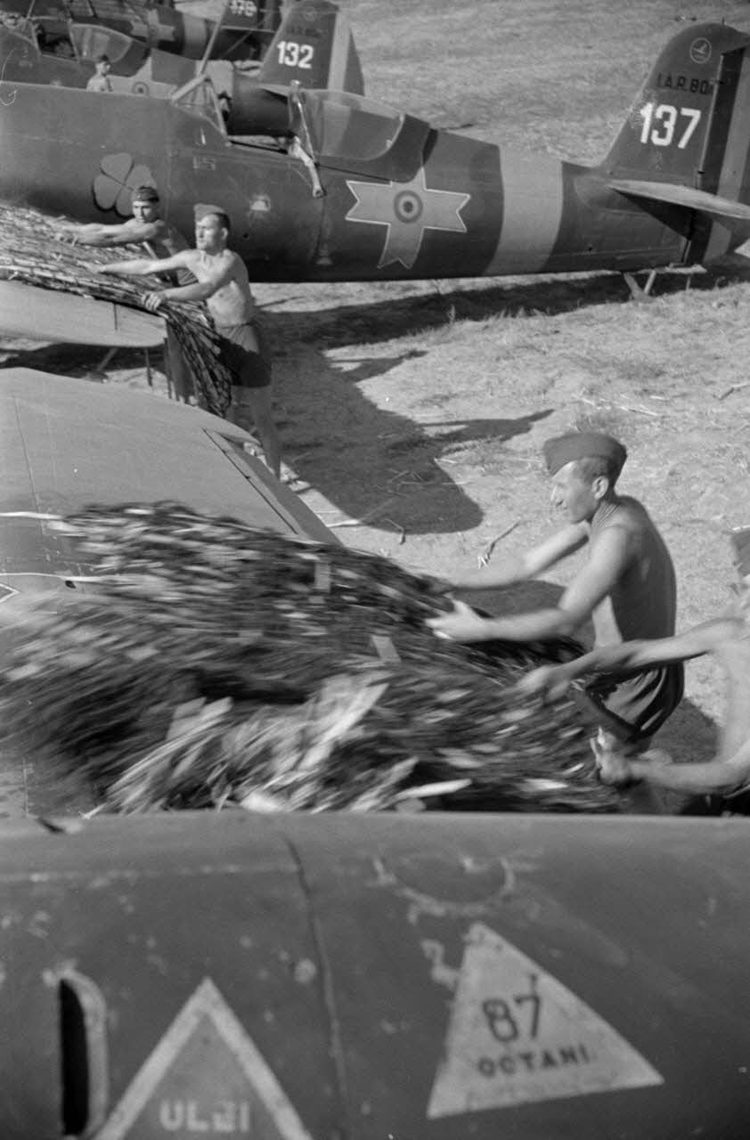Des mécaniciens roumains du Grupul 9 préparent des chasseurs IAR 80 pour une nouvelle mission.