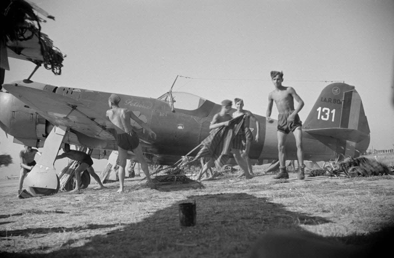 Des mécaniciens roumains du Grupul 9 préparent des chasseurs IAR 80 pour une nouvelle mission.