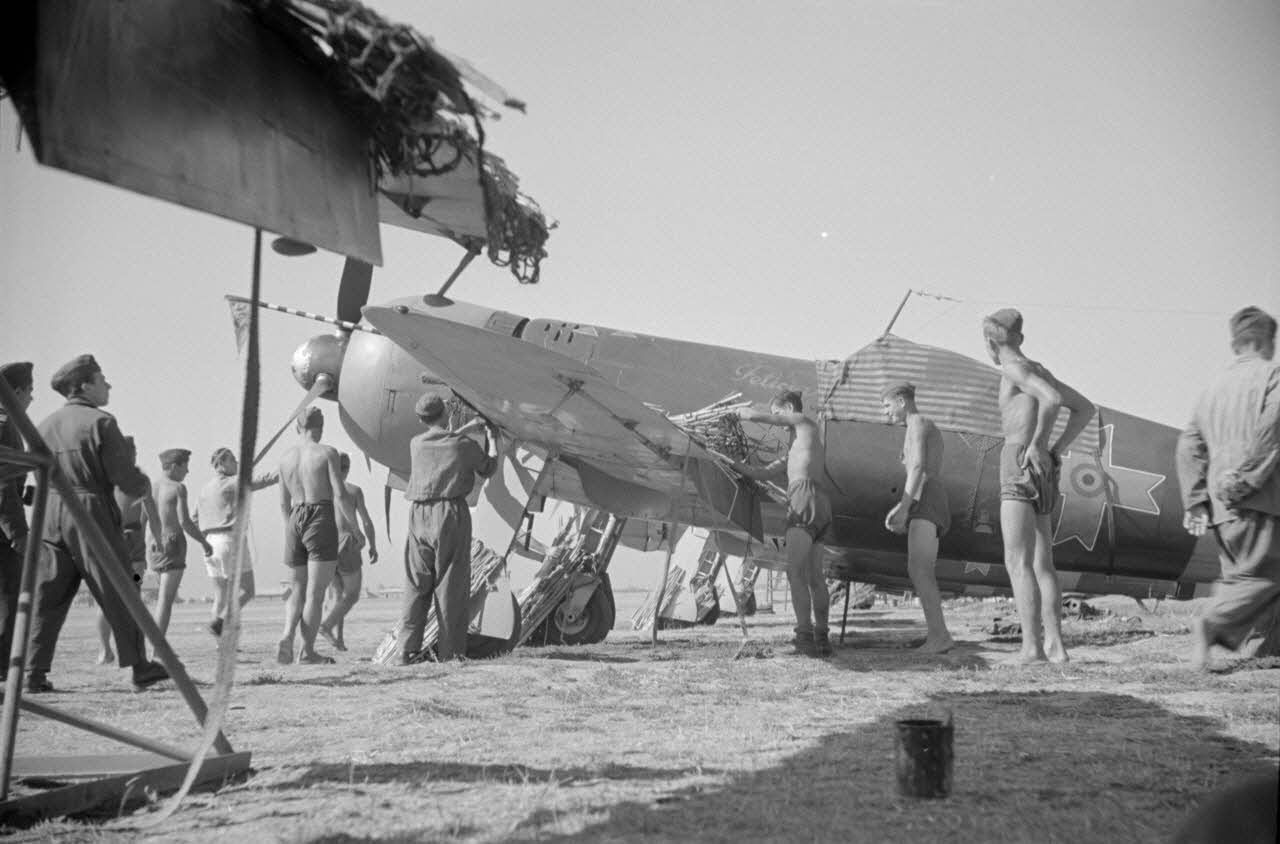 Des mécaniciens roumains du Grupul 9 préparent des chasseurs IAR 80 pour une nouvelle mission.