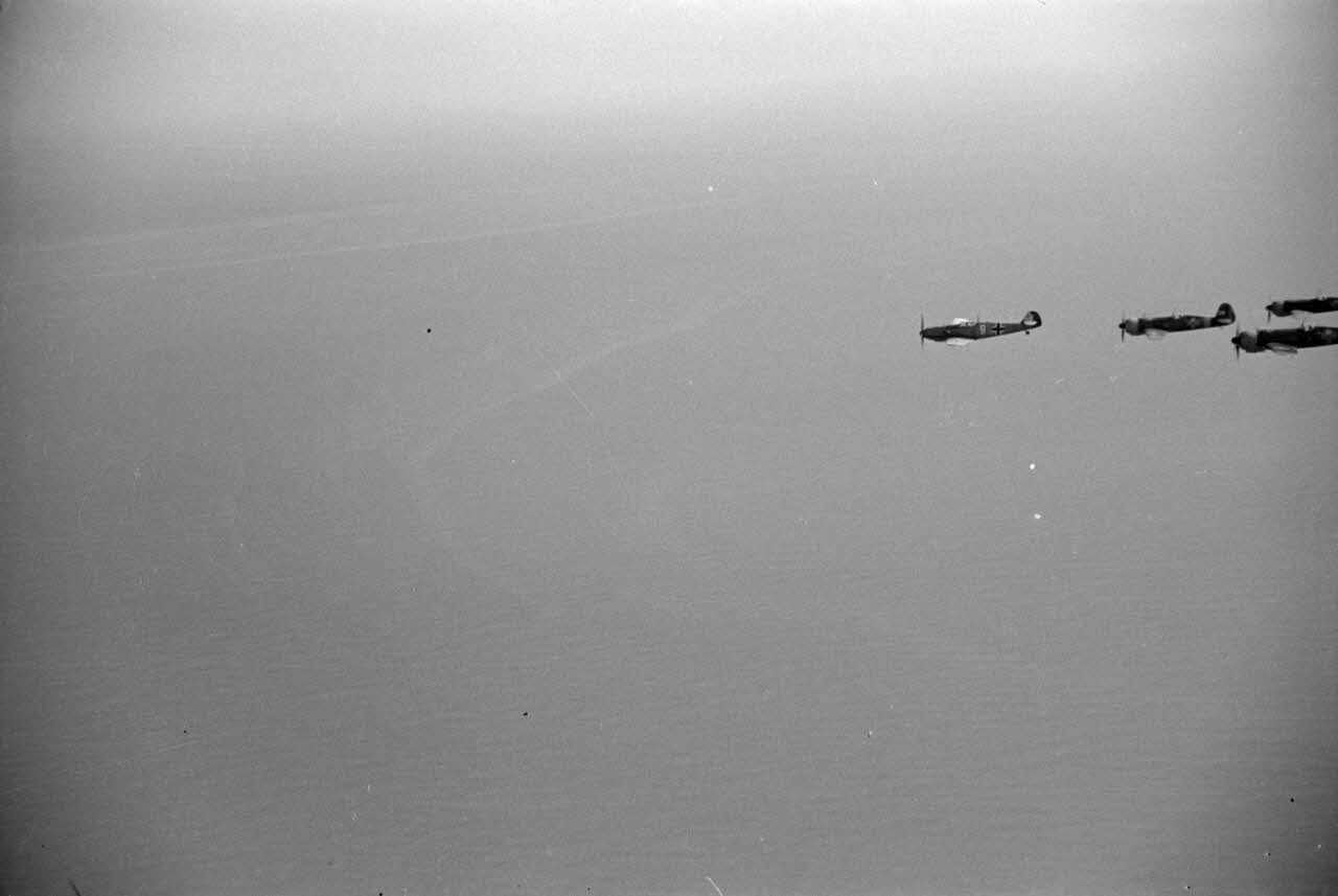 Plan serré sur un pilote allemand aux commandes d'un chasseur Messerschmitt, verrière ouverte (DAA 2622 L06 et L07). Le pilote est équipé d'un gilet de sauvetage. Portraits d'un adjudant (Feldwebel) pilote de chasse (DAA 2622 L08 et L09). Portrait du sous-lieutenant Av. Lucaci Mihai, de la 52e escadrille (DAA 2622 L10). Pilotes roumains et allemands jouant aux cartes, derrière eux un chasseur Messerschmitt Bf-109 (DAA 2622 L11). Photographiés depuis un biplan, l'évolution de chasseurs roumains IAR 80 et de Messerschmitt Bf-109 allemands (DAA 2622 L12 à L19). Portraits d'un pilote roumain et d'un faucon (oiseau) sur le bras (DAA 2622 L20 à L21). Une sentinelle roumaine coiffée d'un casque Adrian. Portrait de groupe de membres du 9e groupe de chasse roumain dans une voiture et armés de fusils de chasse. Au premier plan, l'officier au volant porte le trèfle sur sa tenue, qui est l'insigne de la 9e escadrille roumaine (DAA 2622 L23).