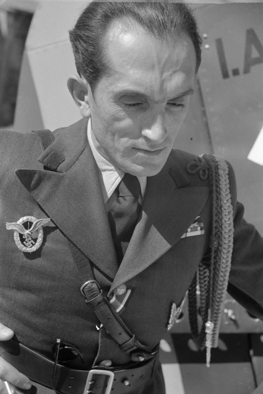 Sur le terrain de Mamaia, un pilote roumain du Grupul 9 quitte son chasseur IAR 80.