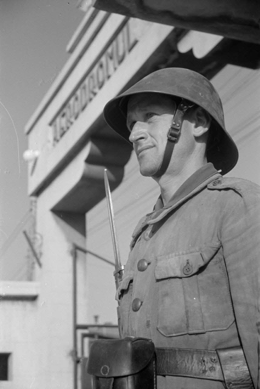 Portrait d'un officier de l'armée de l'air roumaine titulaire du brevet de pilote allemand. Avions de chasse roumains IAR 80 du 9e groupe de chasse durant une mission. Retour des pilotes et accueil de l'un d'entre eux. Debriefing de pilotes roumains à proximité d'un avion de chasse roumain IAR 80. Etude d'une carte au sein d'une salle d'opération, travail en commun d'un officier de la Luftwaffe et d'un officier de l'armée de l'air roumain. Une sentinelle roumaine. Mise en place de ballons anti-plongée au-dessus d'un terrain d'aviation. Jeunes femmes et bovins passent à proximité du terrain.