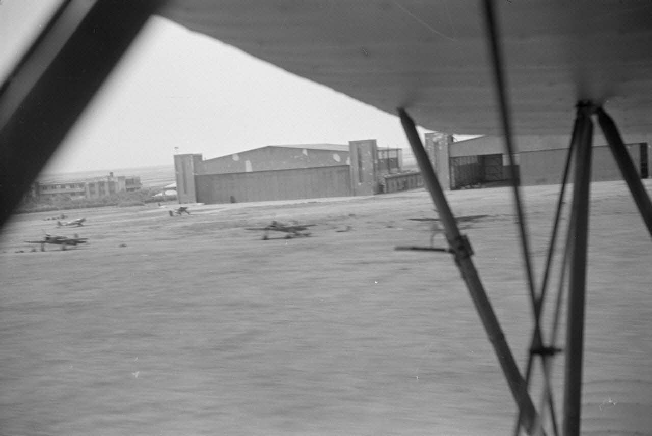 Un tableau en ardoise présente le programme des activités du 7 septembre 1942. Un mécanicien roumain approvisionne l'arme de bord d'un hydravion Heinkel He-114 de l'armée de l'air roumaine. Un pilote roumain s'équipe pour une mission. Un hydravion aux couleurs roumaines, il pourrait s'agir d'un Savoia Marchetti S.59. Un hydravion Heinkel He-114 à quai. Un hydravion roumain quitte son port. Un pilote roumain avec un fusil de chasse. Décollage de deux hydravions Heinkel He-114, un exemplaire roumain et un Heinkel He-59 de la Luftwaffe. Un membre de la 9e escadrille de chasse roumaine, comme l'atteste le trèflle cousu sur sa poitrine. Peut-être un photographe de l'armée de l'air roumaine, ou simplement un officier équipé d'un boitier photographique. Le même officier portant un appareil photo et saluant le reporter lors du décollage. Vue aérienne du terrain et des hangars lors du décollage. On reconnaît distinctement les hangars caractéristiques du terrain de Mamaia.