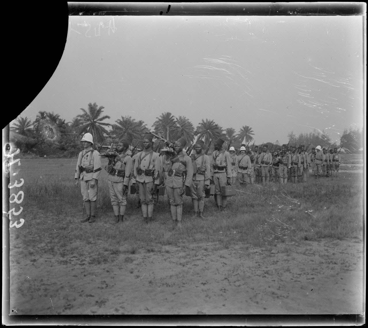Douala. Camp de la 3e compagnie de tirailleurs. Mitrailleurs. [légende d'origine]