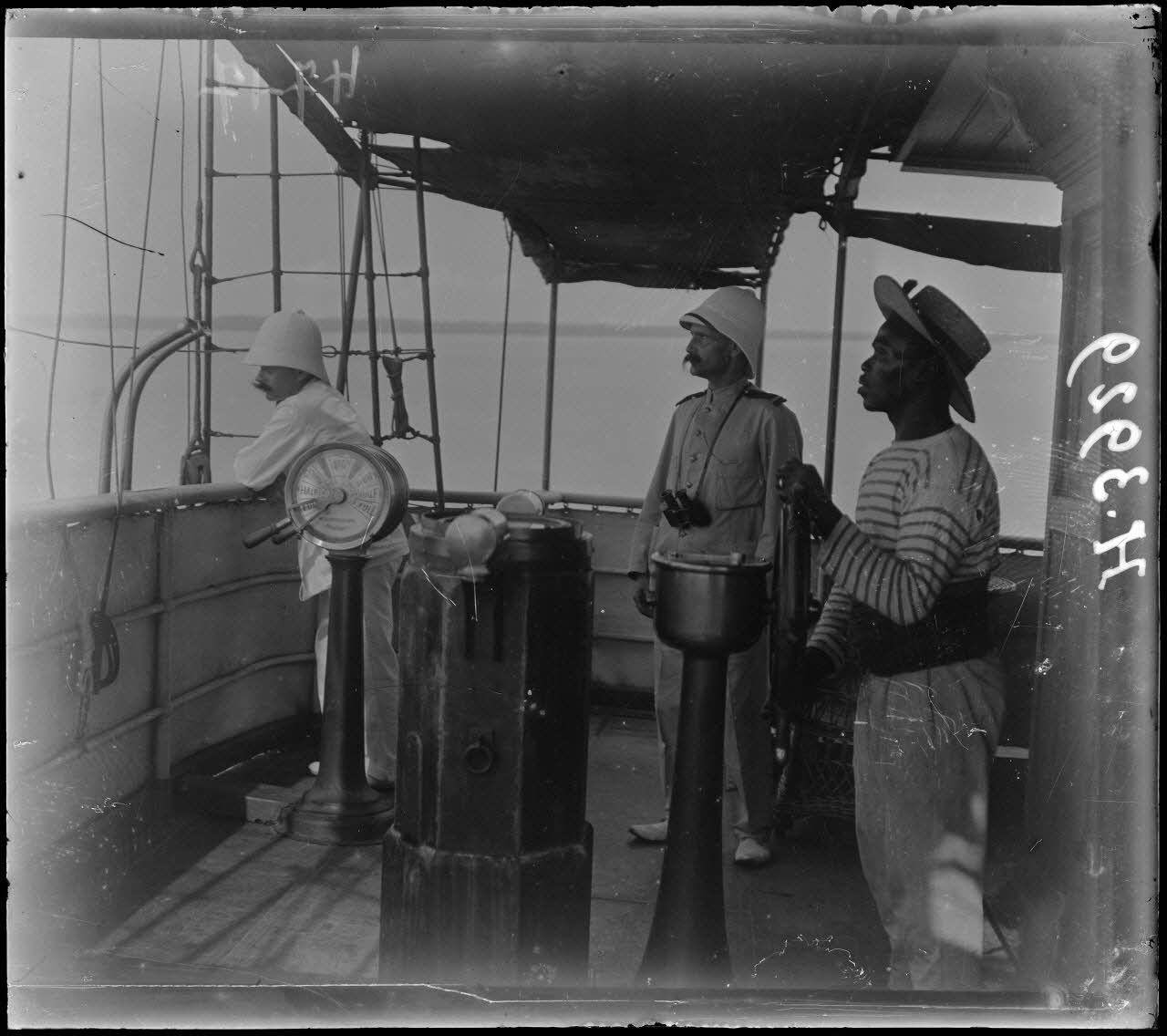 Rade de Suélaba. Un navire espagnol descend le fleuve Cameroun.