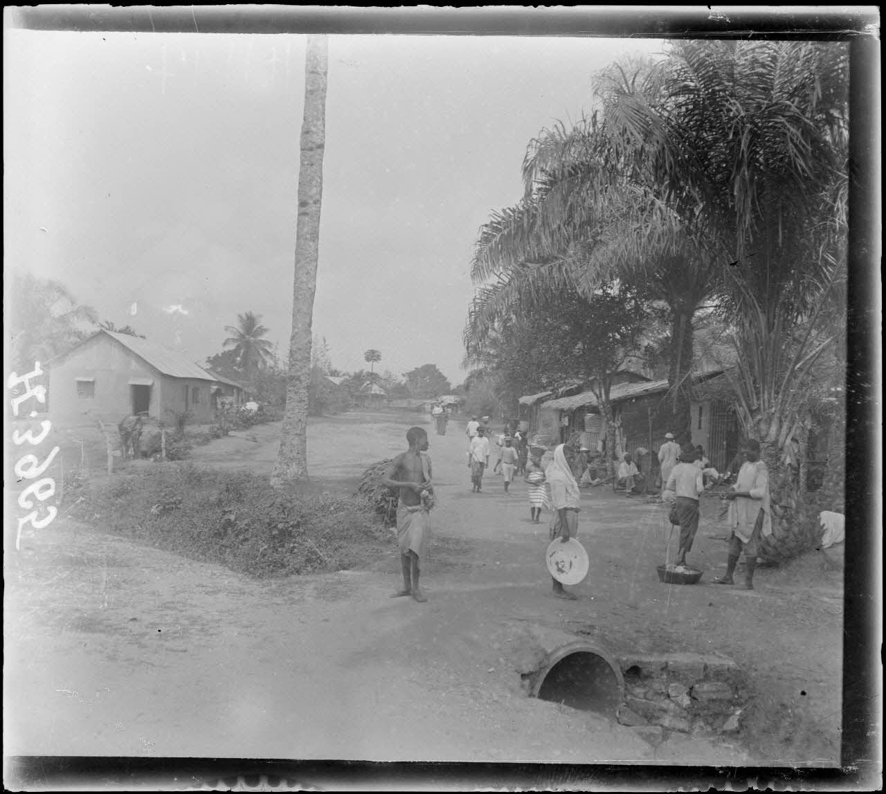 De retour au port de Douala, l'opérateur photographie l'approche du bateau vers le wharf. Dans un quartier indigène de la ville, il photographie la population et une boutique.
