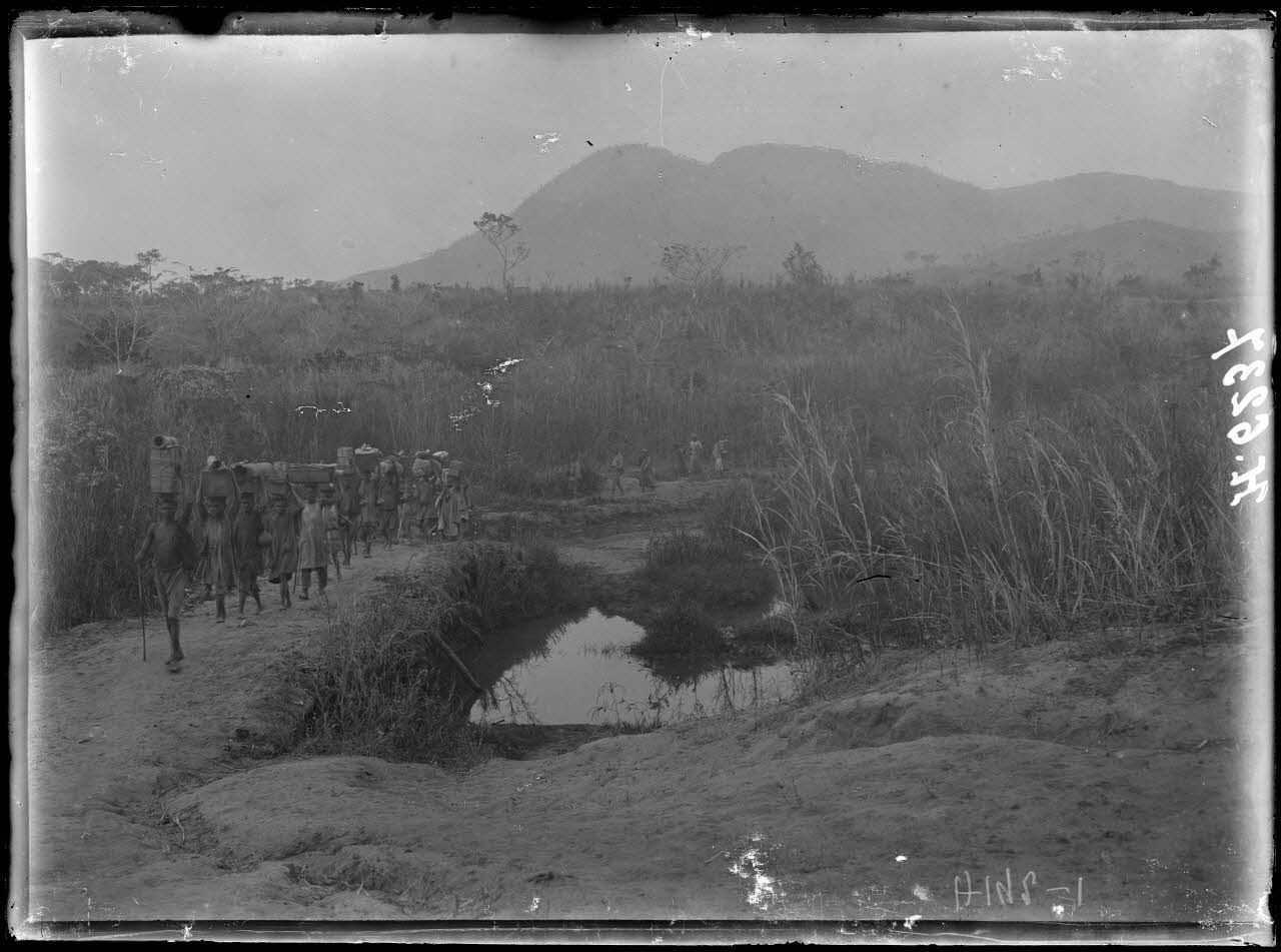 Route de N'Gaoundéré à Garoua. Porteurs se lavant dans le mayo Matoléro.