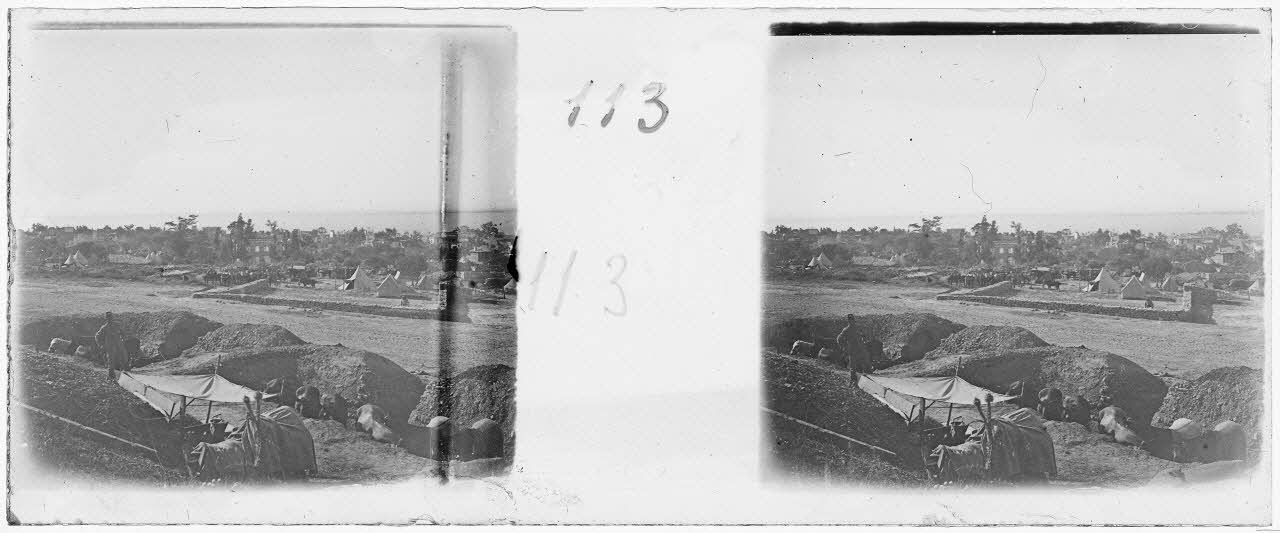 D137-20-113 : [Panorama d'un second campement militaire avec au loin le front mer]