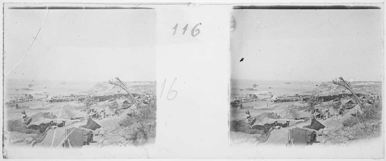 [Campagne des Dardanelles, 1915. Panorama du campement militaire installé sur la plage de Sedd-Ul-Bahr].