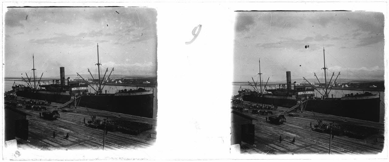 [Le voyage vers les Dardanelles : l'embarquement du matériel sur le cargo River Clyde, quais de Marseille, février 1915].