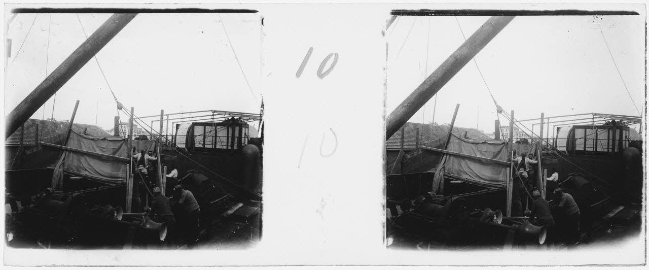 D137-20-4 : [La préparation du voyage, l'embarquement des automobiles sur le Provence au port de Marseille en février 1915]