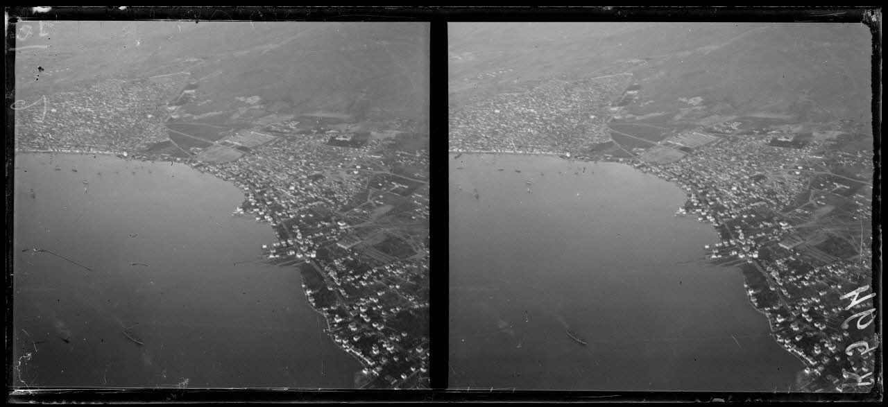 Salonique. Vue prise en aéroplane, au fond, vers l'est-nord-est le lac de Langaza (Ajvasil) (vue prise à 800m à 140 km à l'heure).