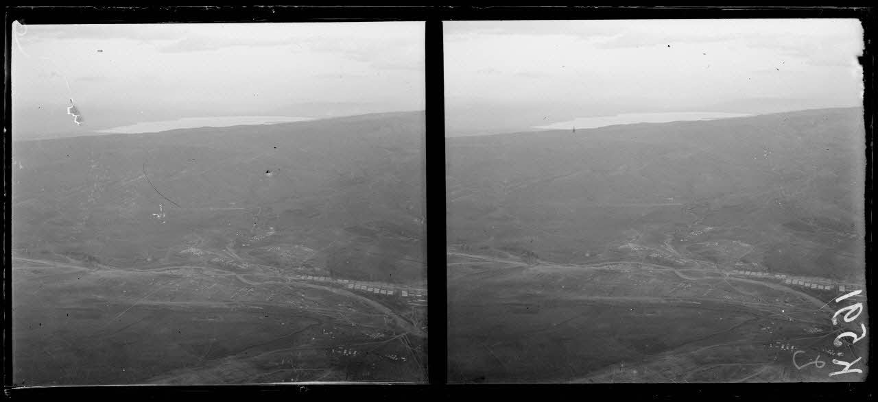 Salonique. Vue prise en aéroplane, au fond, vers l'est-nord-est le lac de Langaza (Ajvasil) (vue prise à 800m à 140 km à l'heure). [légende d'origine]