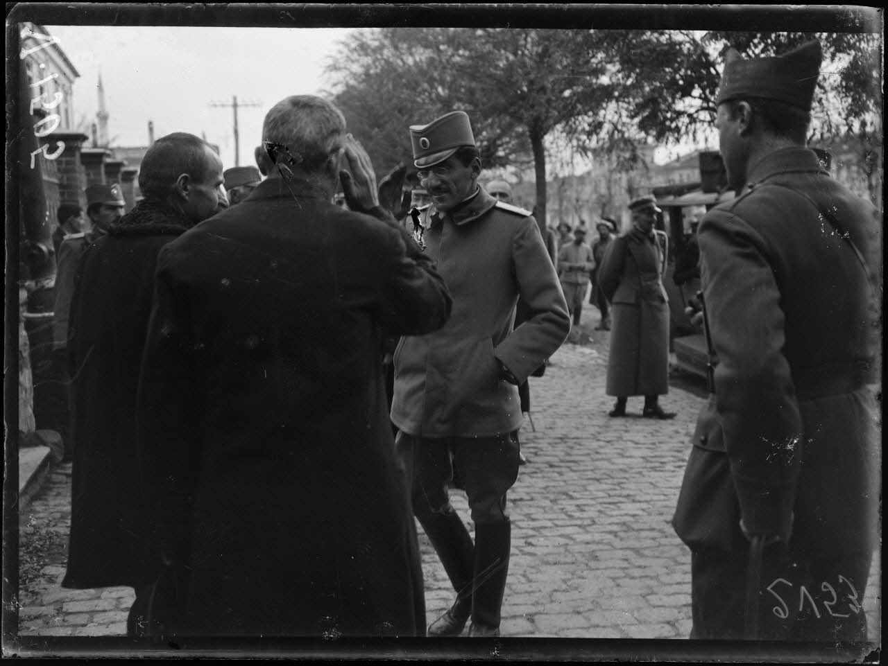 Le général Sarrail, accompagné du prince de Serbie arrivent en auto dans la ville. D'autres personnalités de l'Entente sont présentes telles que le major-général russe Dieterichs ou encore Sir Thomas Herbert Cochrane Troubridge. Les coffres-forts de la préfecture incendiée de Monastir sont vides suite au pillage des soldats allemands.