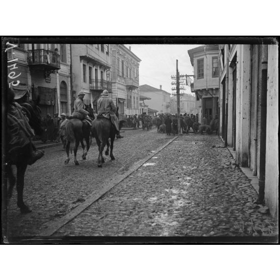 Monastir. Les premières troupes françaises passant dans la rue principale.