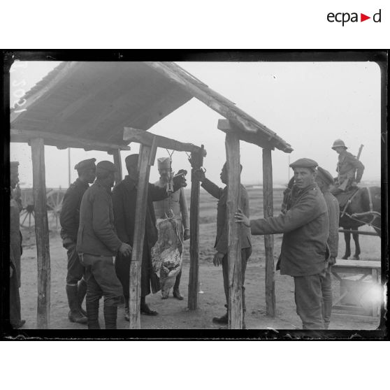 (Mikra). Prisonniers bulgares pesant de la viande.