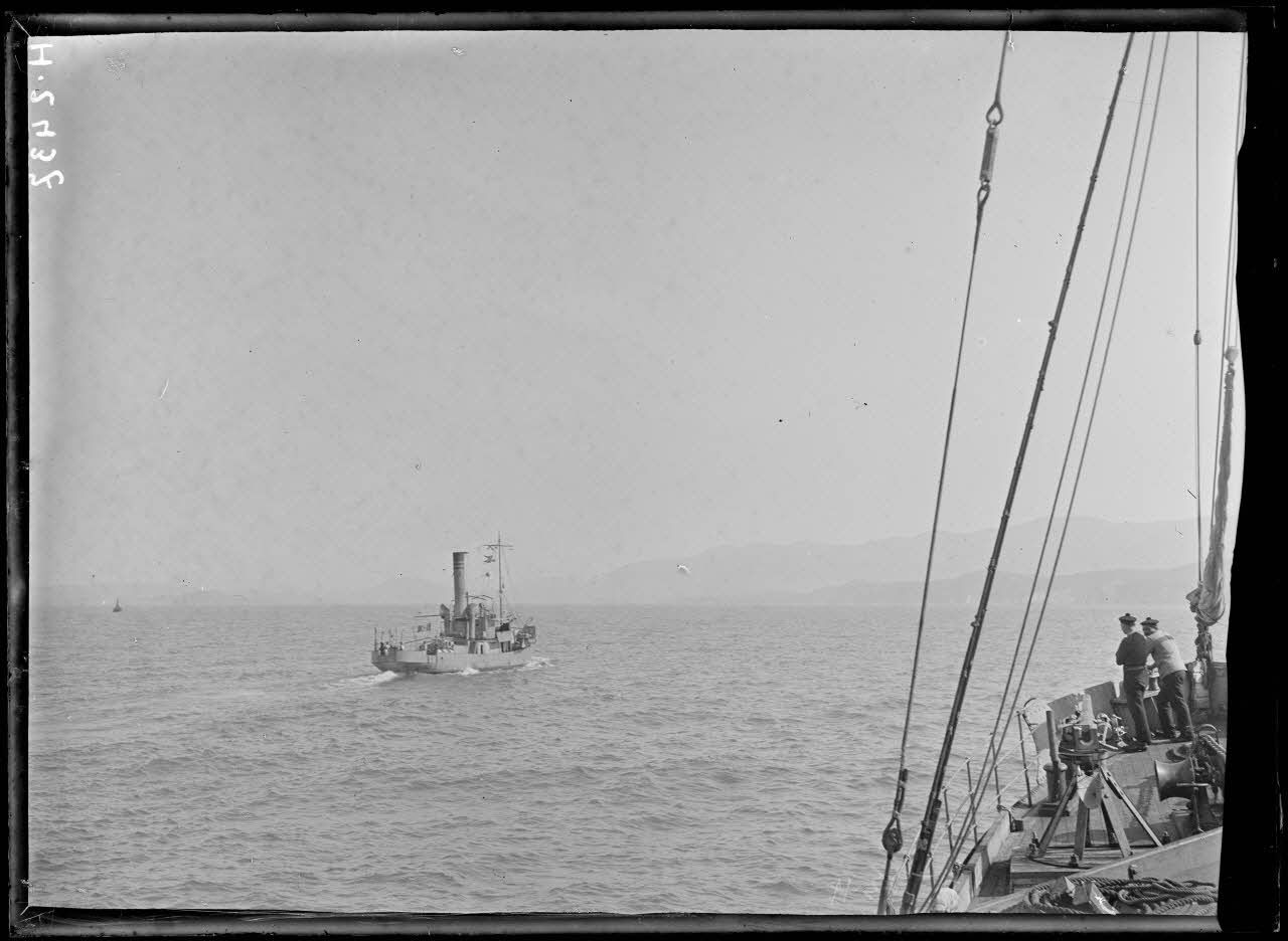 Rade de Govino. A bord du Miquelon. Au moment du départ du Miquelon les serbes crient "vive la France".