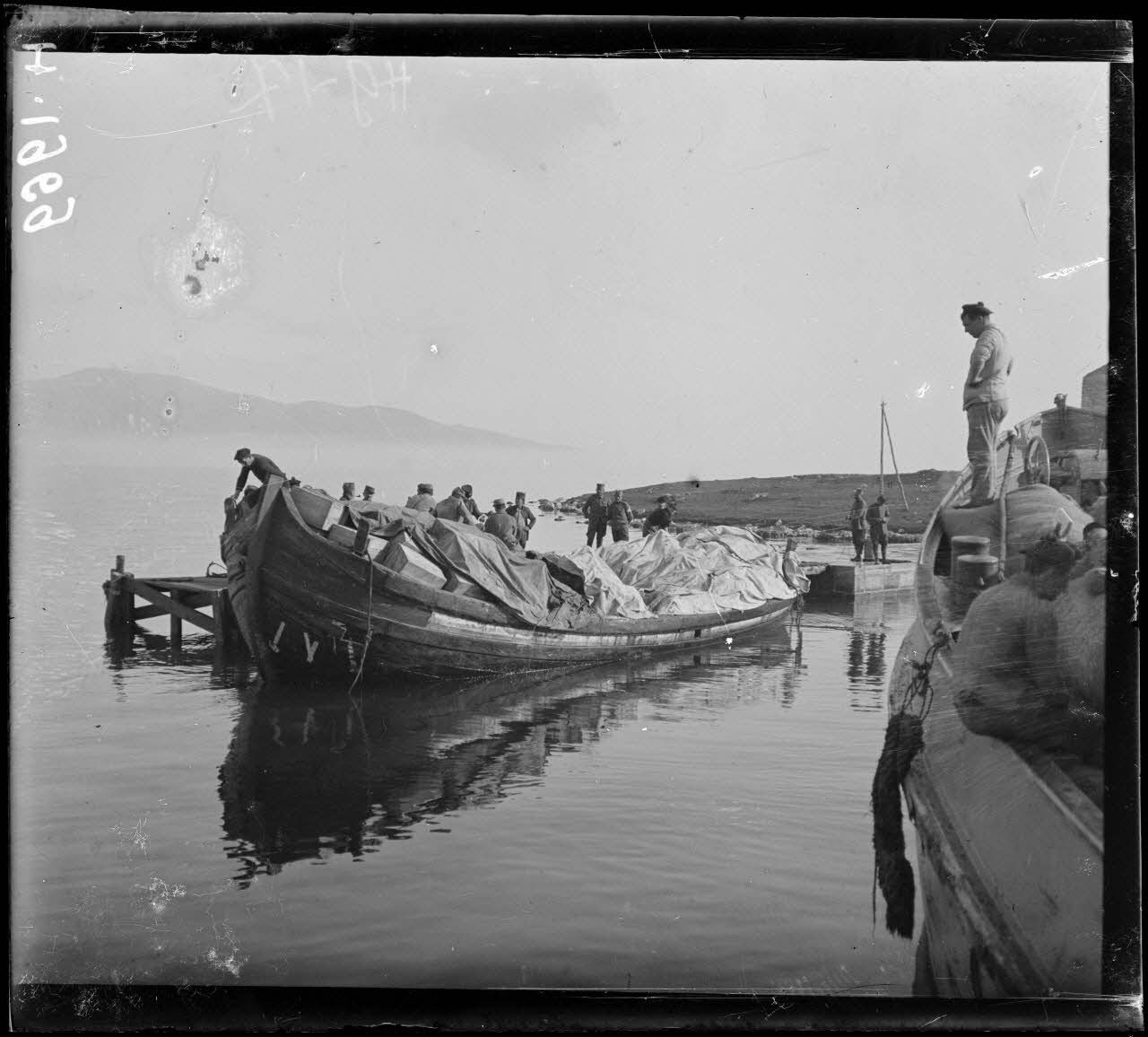 Corfou. Serbes déchargeant du bois de l'Edouard Corbière.