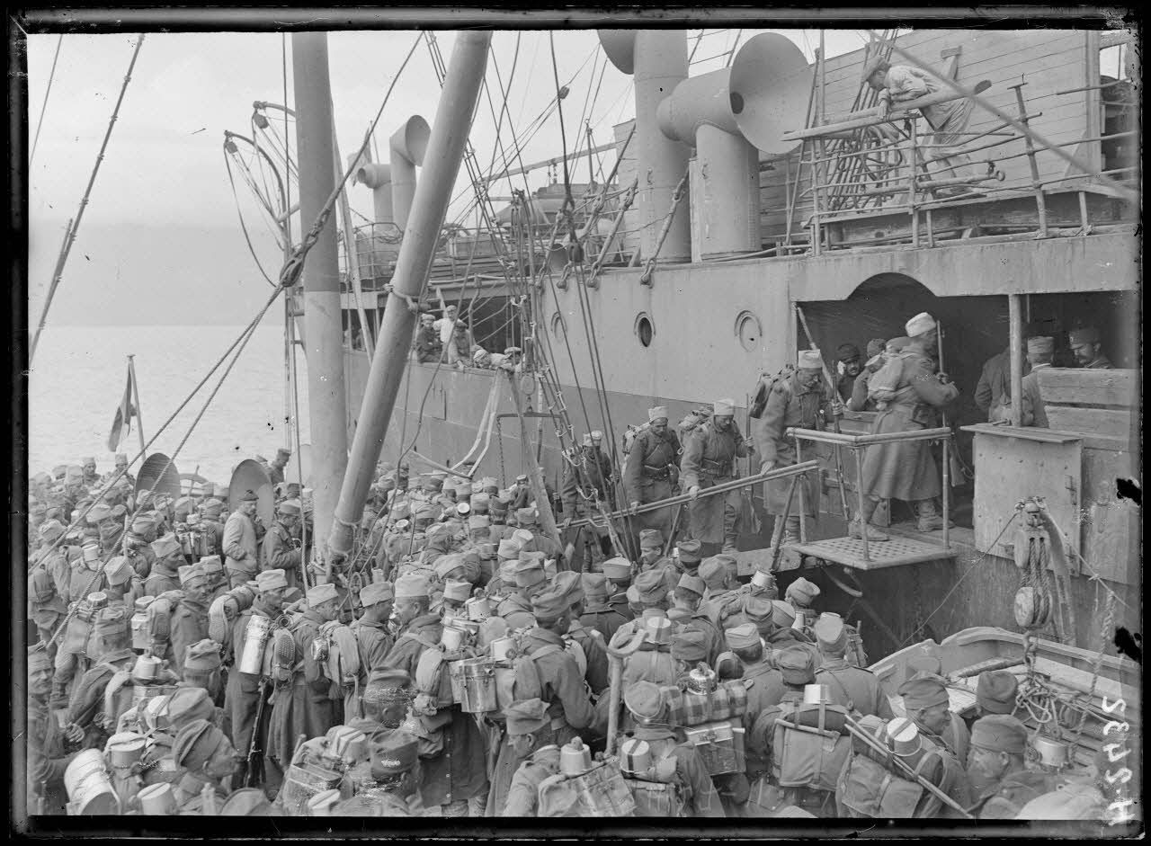 Embarquement des troupes serbes à Govino, avril-mai 1916.