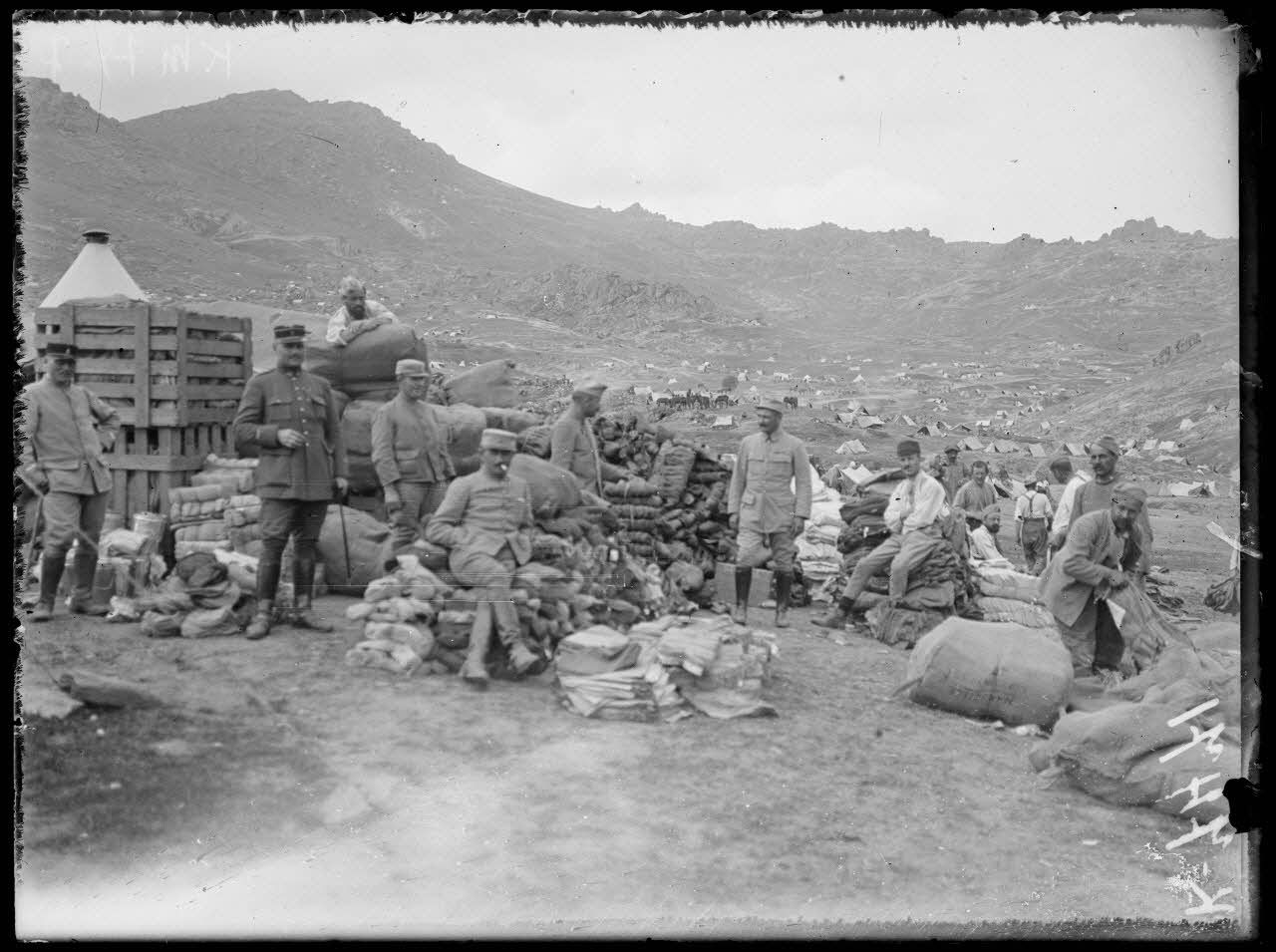 Cegel (Cerna). Les casques coloniaux arrivent au cantonnement.