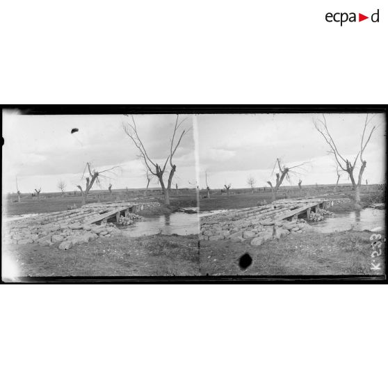 Lozani (janvier 1917, K5280 à K 5273), pont inachevé capturé par les Alliés, moulin hydraulique.