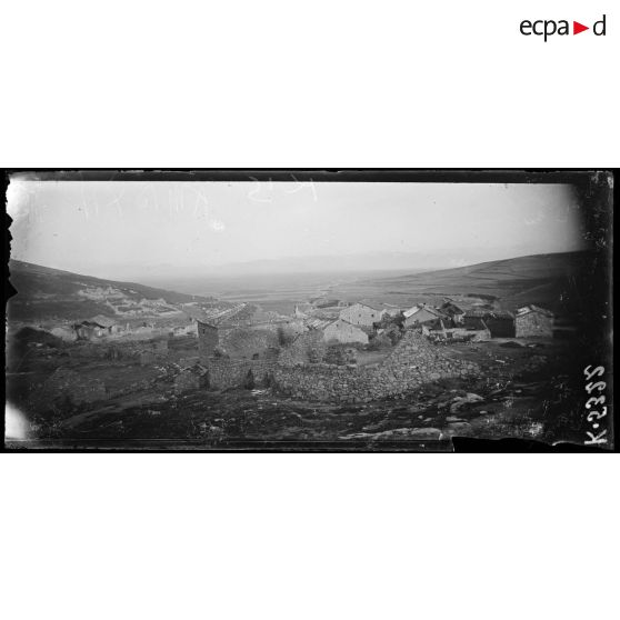 Ruines de Rostani et ravin servant de 1eres lignes. Au fond, le village d'Orizari Gren aux français.