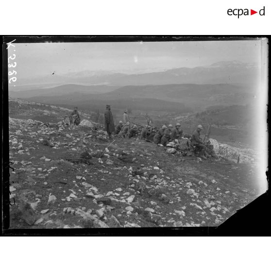 Bratomir. Tranchée occupée par les chasseurs d'Afrique. Le commandant Franchat, du 2e R.M.A.