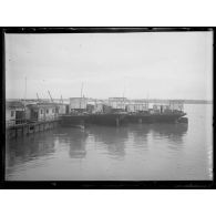 Des soldats français déchargent les péniches.