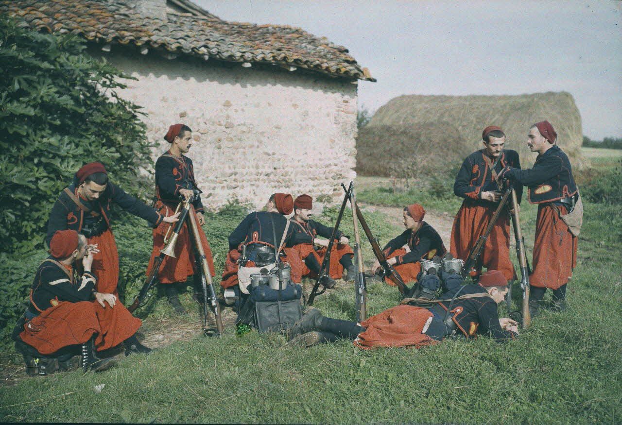 - 3e régiment de zouaves, le 14e régiment du train des équipages, le 4e régiment de spahis algériens, les troupes indiennes britanniques, portraits de groupes ou photographies dynamiques de manoeuvres ou d'exercices ;