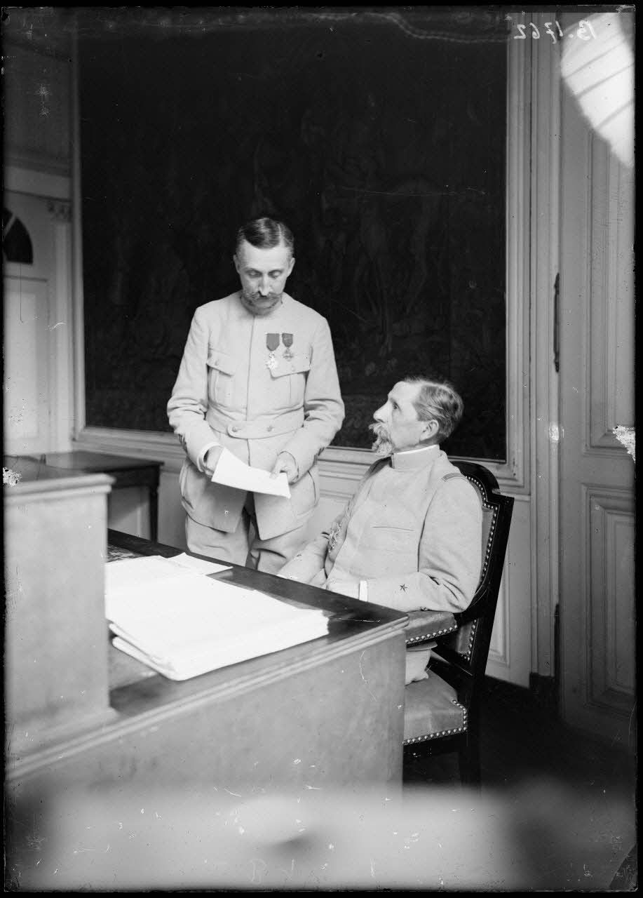 Toul (Meurthe-et-Moselle), cabinet de travail du général Roques avec son officier d’Etat-major.