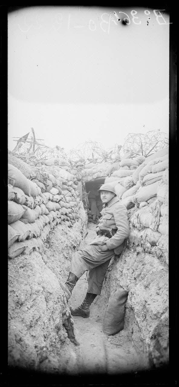 Un soldat français pose dans une tranchée. [légende d'origine]