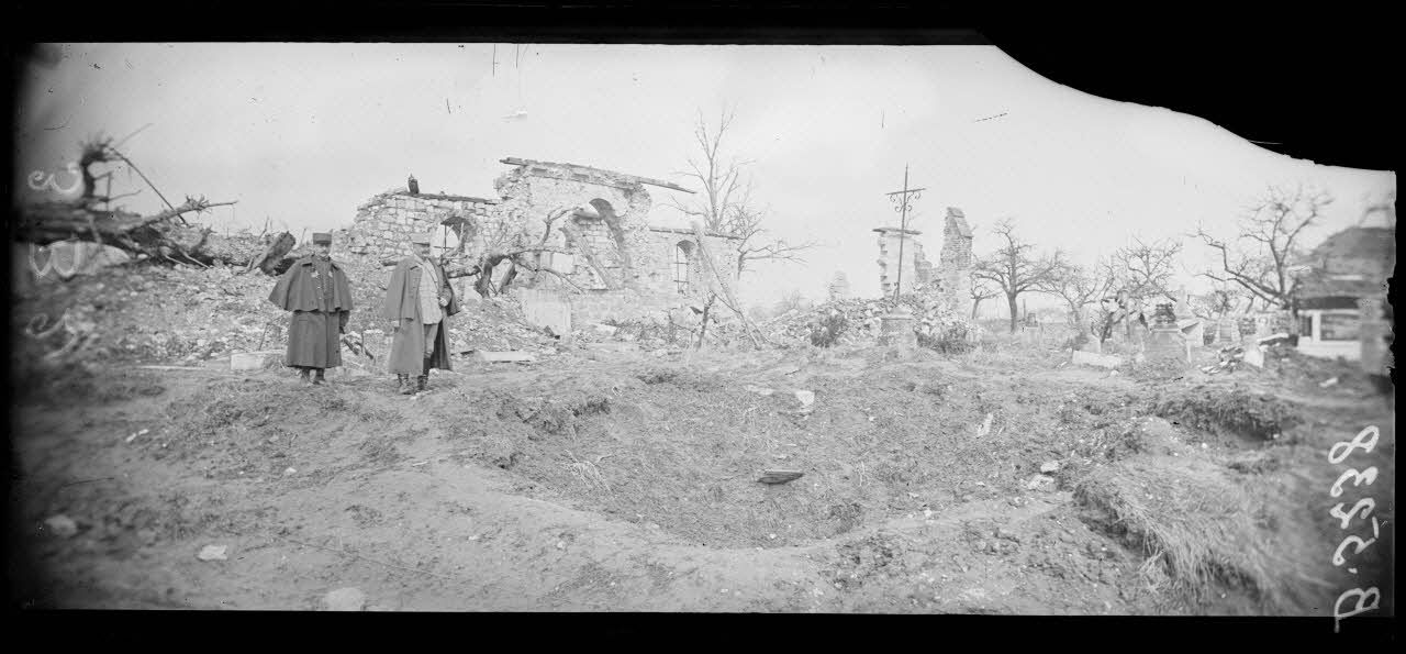 Bailly (Oise), position française, l'église et les ruines.