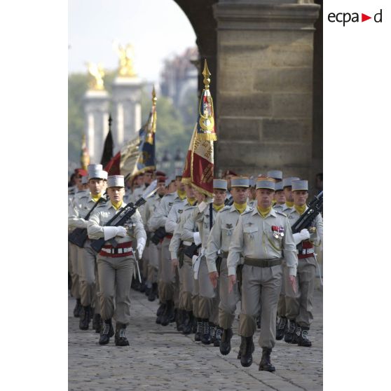 La musique militaire de la Légion étrangère lors d'une cérémonie aux Invalides pour le 50e anniversaire de la bataille de Diên Biên Phu.