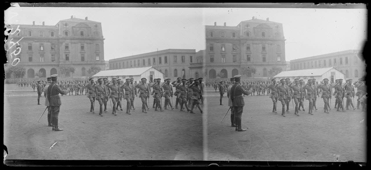 Marseille. Caserne Saint-Charles. Revue des troupes siamoises par le général commandant la 15e région. Les troupes et le général siamois.