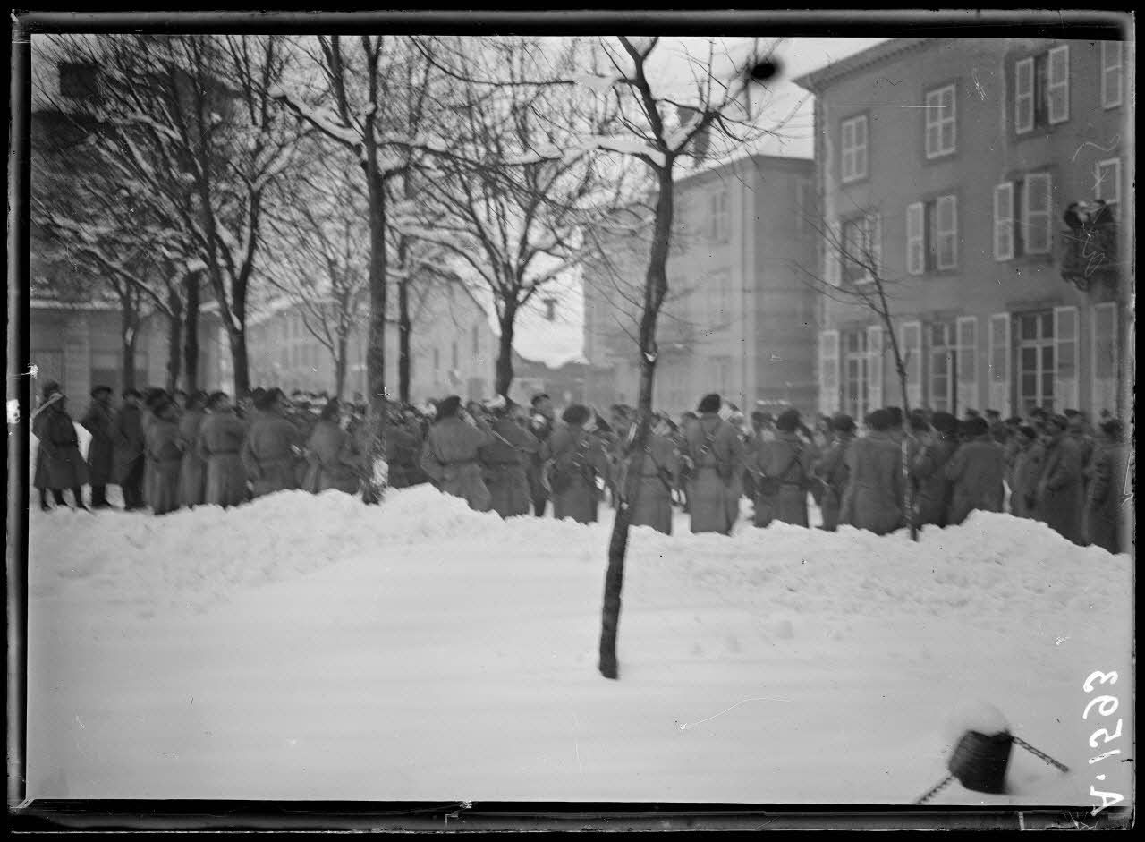 Gérardmer. Concert dans la neige. Musique du 27e chasseurs.