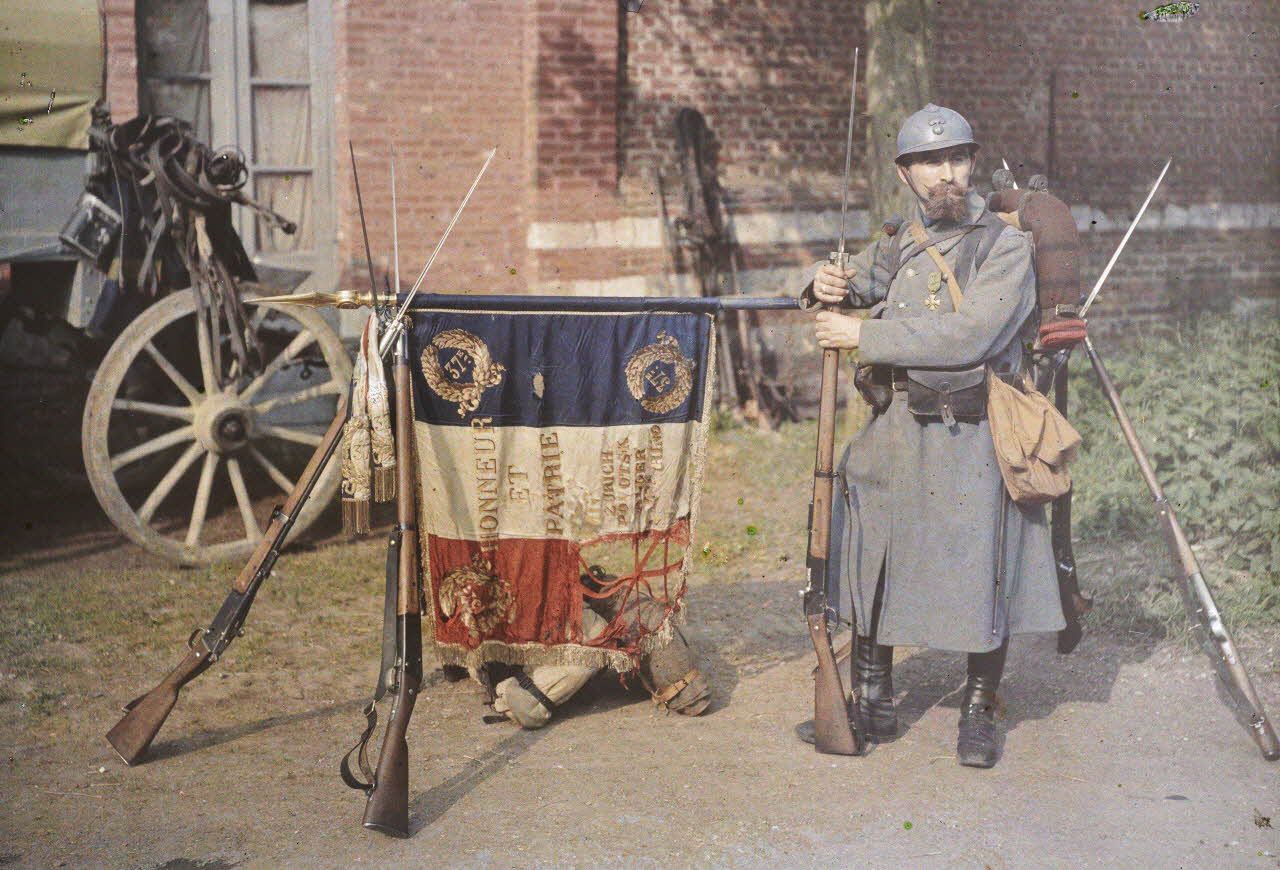 Note : La légende et la datation de l'autochrome sont des hypothèses et sont susceptibles d'être complétées suite à des recherches historiques approfondies. Remerciements à Louis Descols et François Vauvillier pour l'aide apportée à l'identification de l'unité militaire.