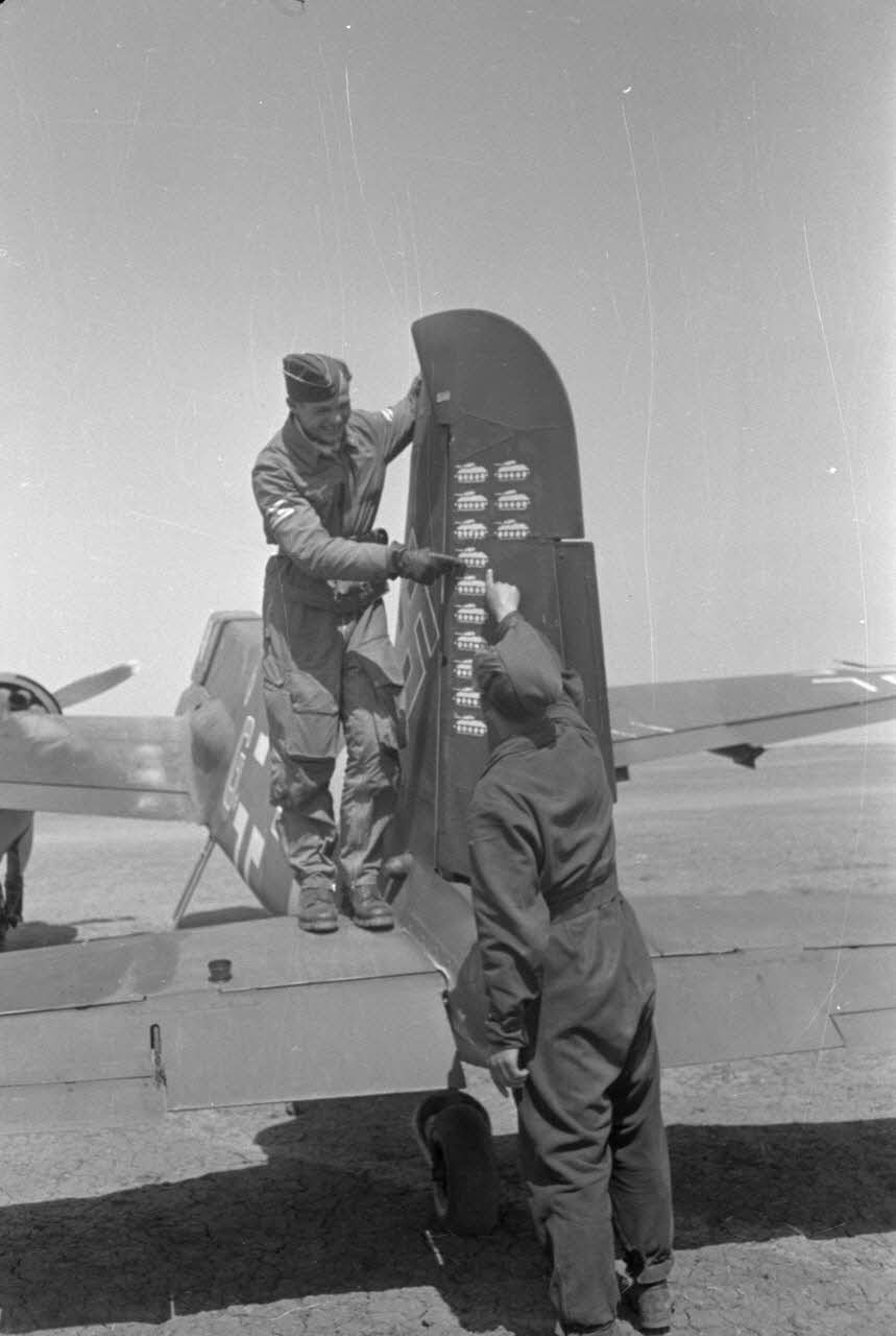 Le pilote Rudolf-Heinz Ruffer à bord de son Henschel Hs-129 du 8. (Panzer)/Schlachtgeschwader 1 (DAA 2682 L00 à L07).