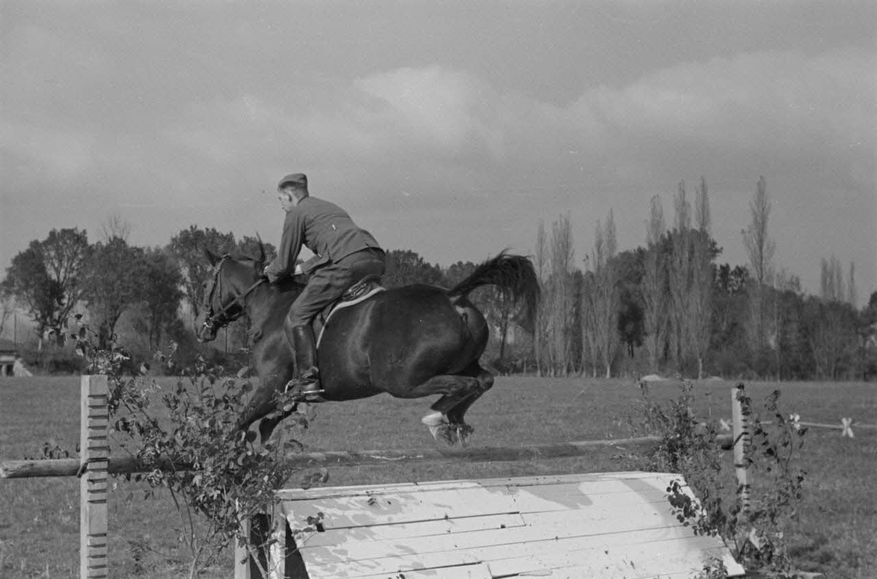 Visite chez le commandant Rudolf Lippert et cavaliers allemands dans un parcours d'obstacles.