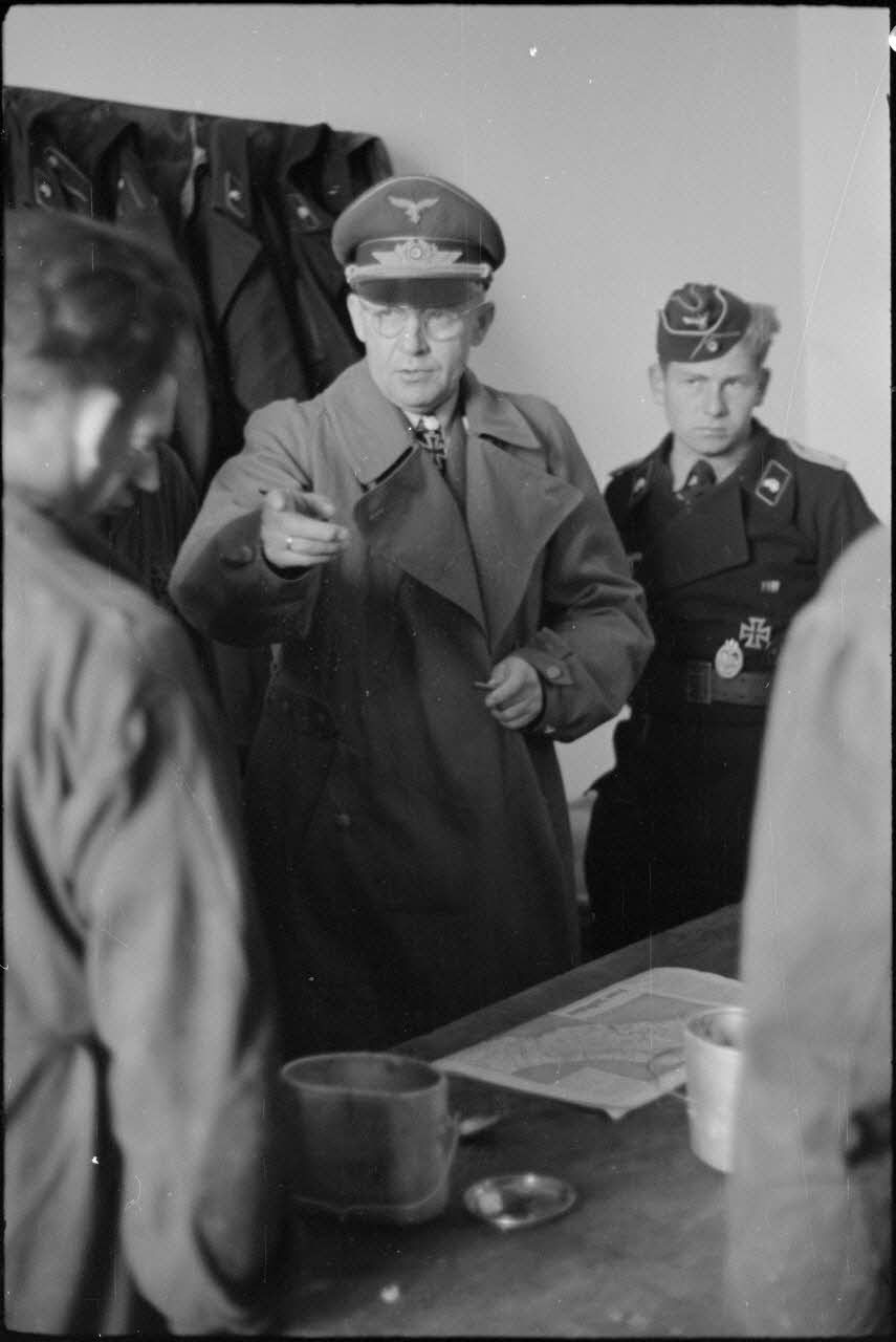Le général des troupes aéroportées Kurt Student lors de l'inspection des locaux occupés par le schwere Panzer Abteilung 508.