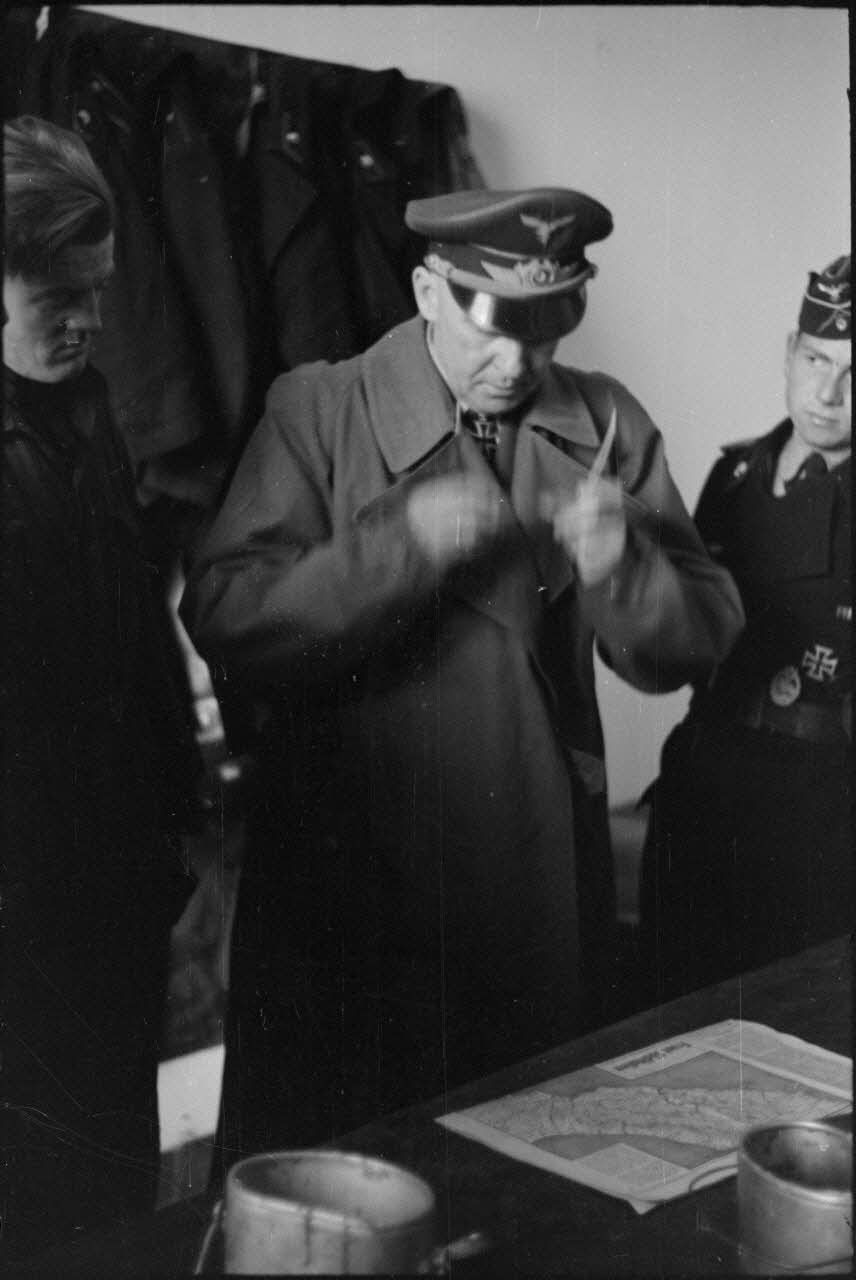 Le général des troupes aéroportées Kurt Student lors de l'inspection des locaux occupés par le schwere Panzer Abteilung 508.