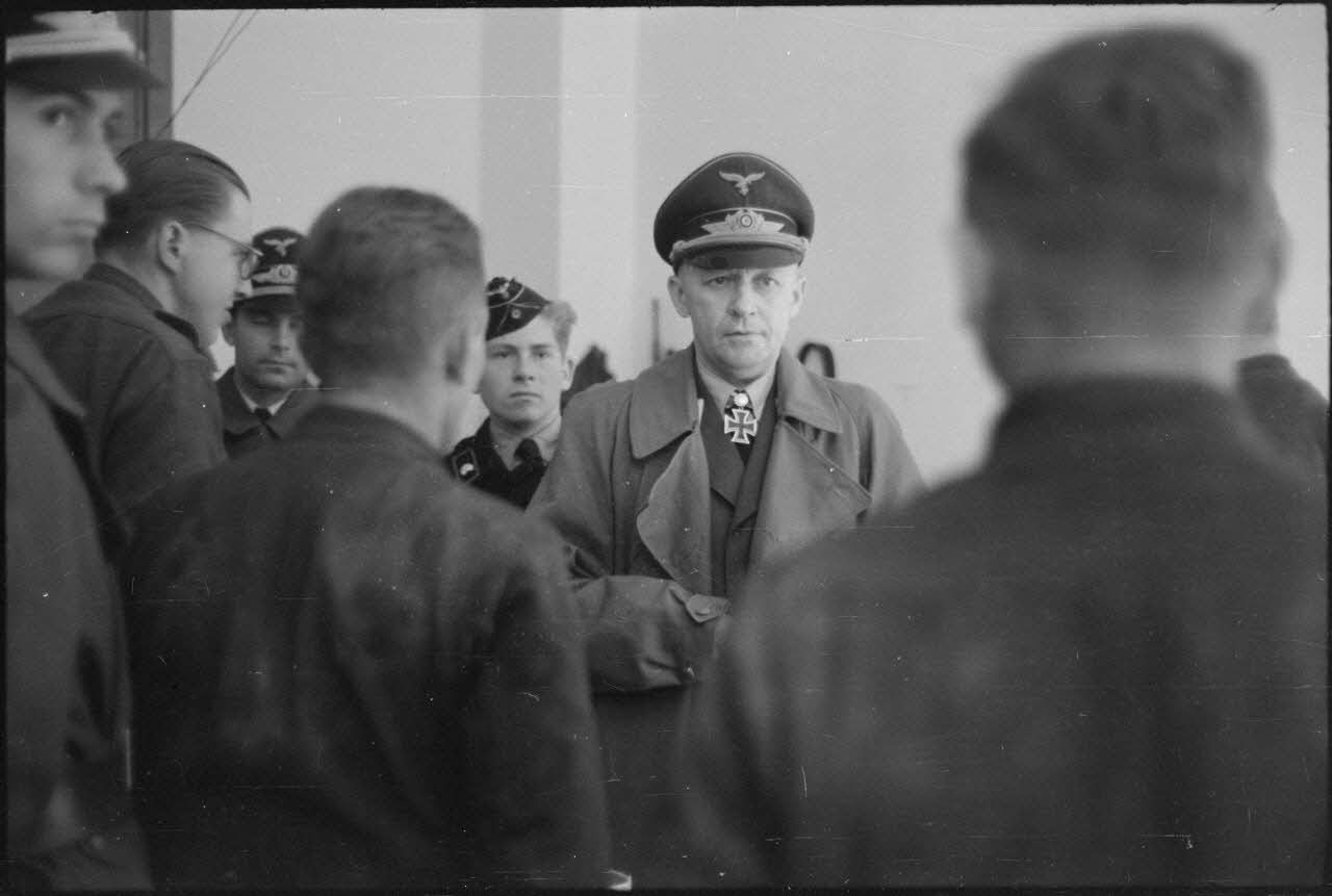 Le général des troupes aéroportées Kurt Student lors de l'inspection des locaux occupés par le schwere Panzer Abteilung 508.