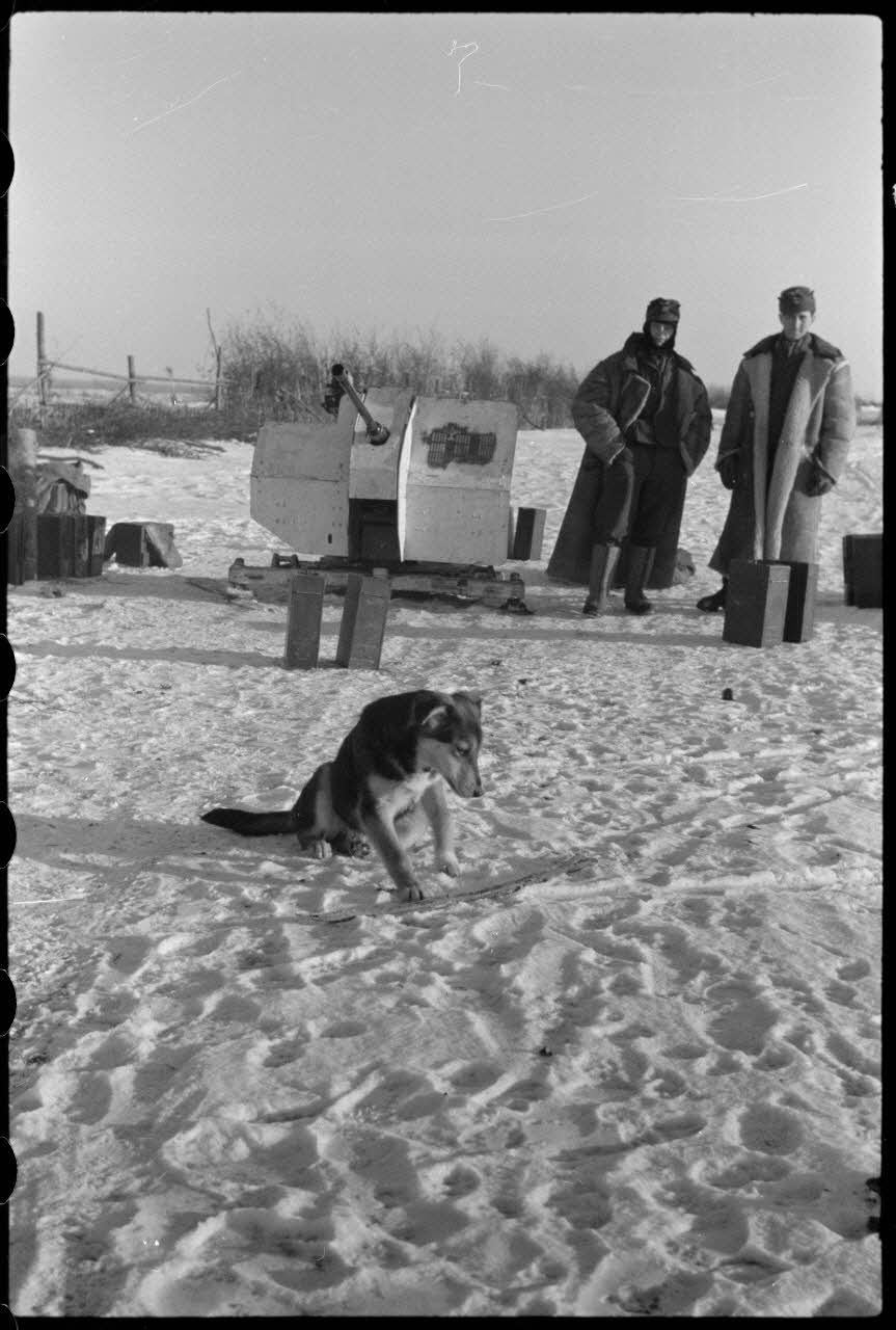 Dans le secteur de Viazma (Wjasma) et durant l'opération Büffelbewegung, des canons de 2 cm Flak sécurisent une route importante pour la retraite allemande.
