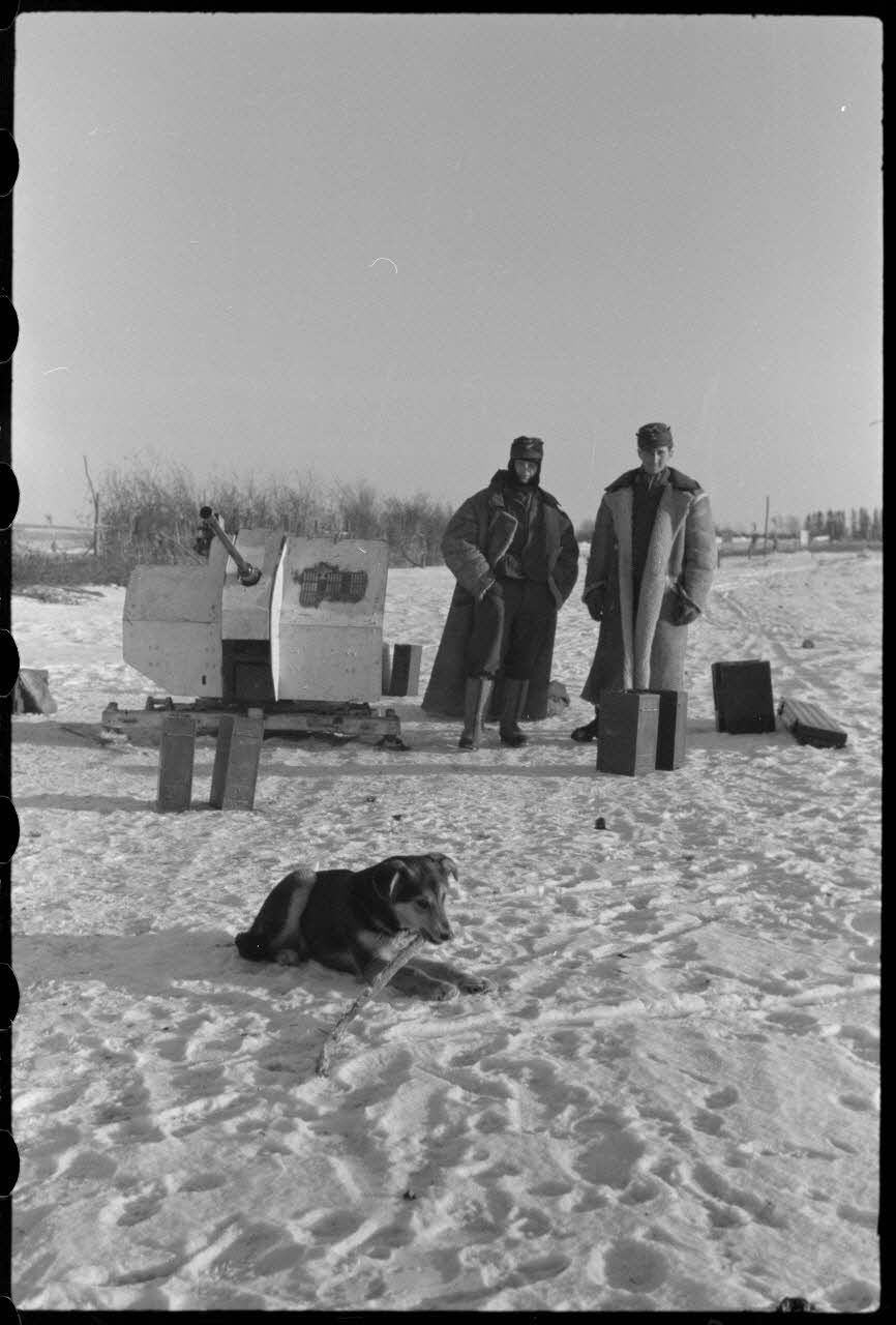 Dans le cadre de l'opération Büffelbewegung, la protection d'une route enneigée par des canons de 2 cm FlaK.