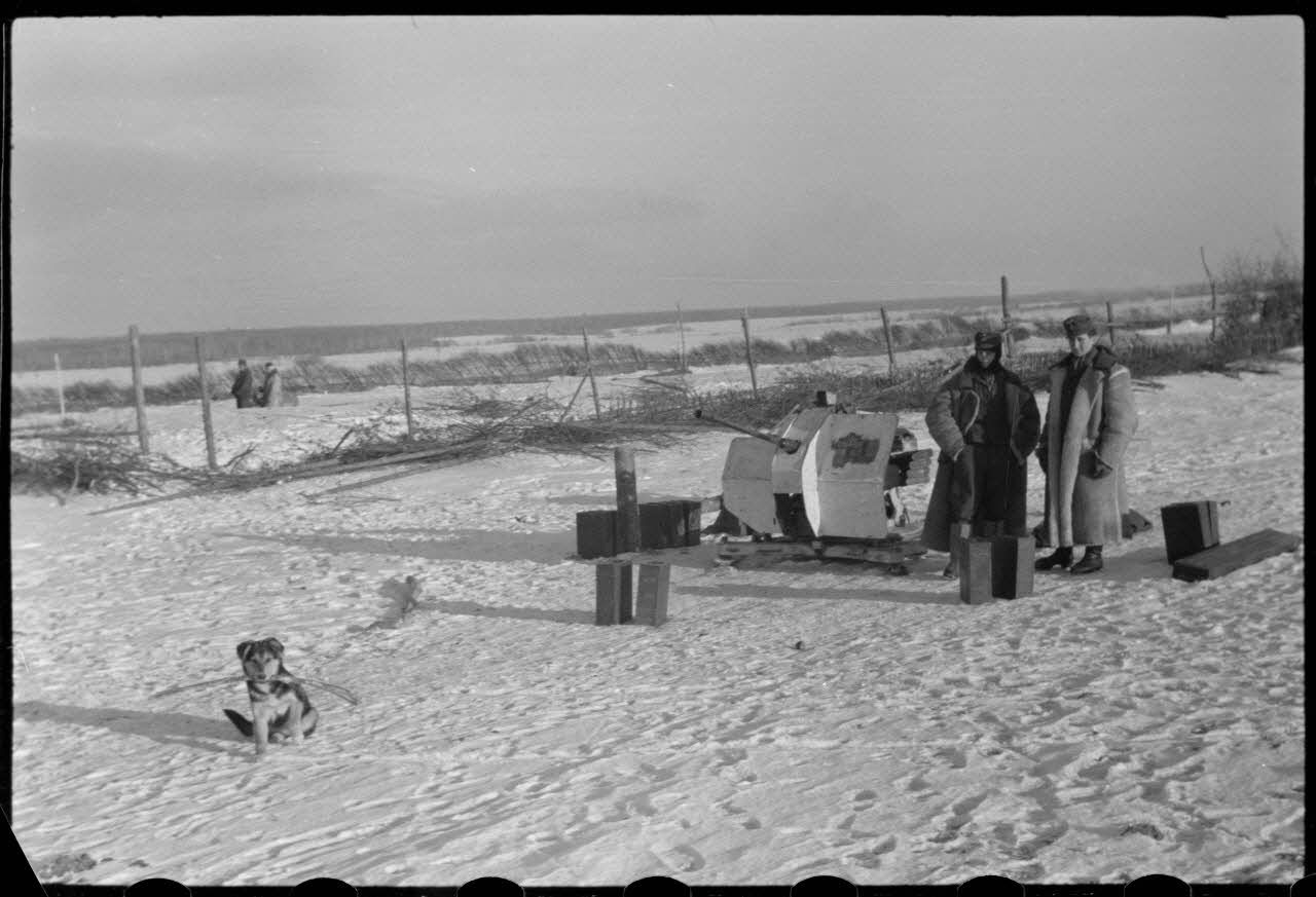 Dans le cadre de l'opération Büffelbewegung, la protection d'une route enneigée par des canons de 2 cm FlaK.