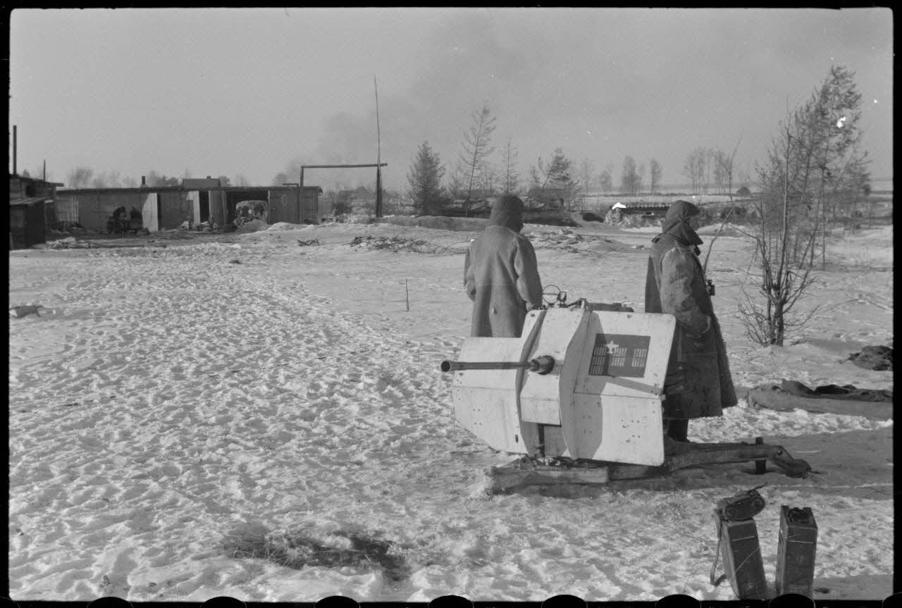 Dans le secteur de Viazma (Wjasma) et durant l'opération Büffelbewegung, des canons de 2 cm Flak sécurisent une route importante pour la retraite allemande.