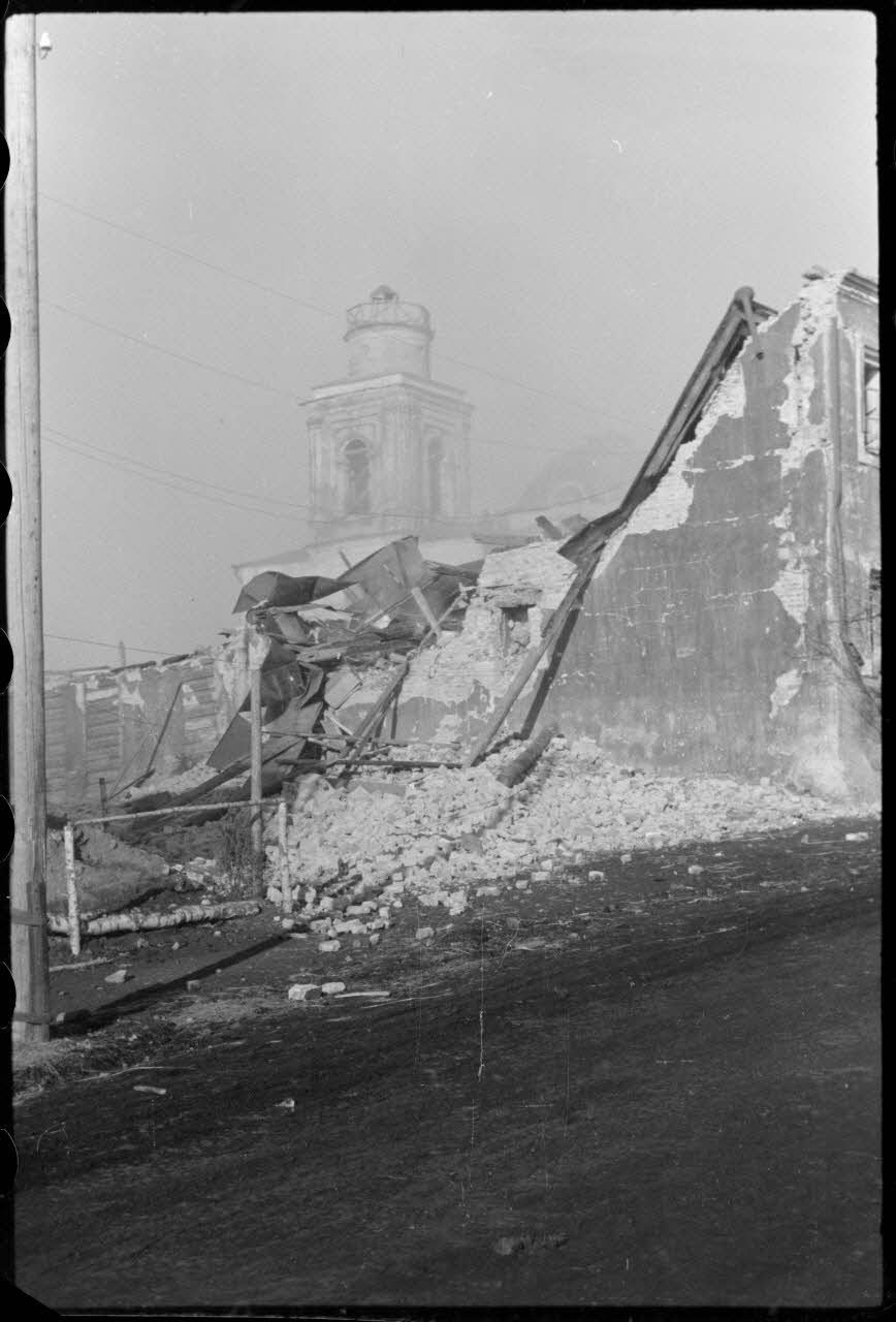 La ville Wjasma peu à avant le départ des troupes allemands, à l'arrière-plan la bibliothèque du front (Frontbuchhandlung).