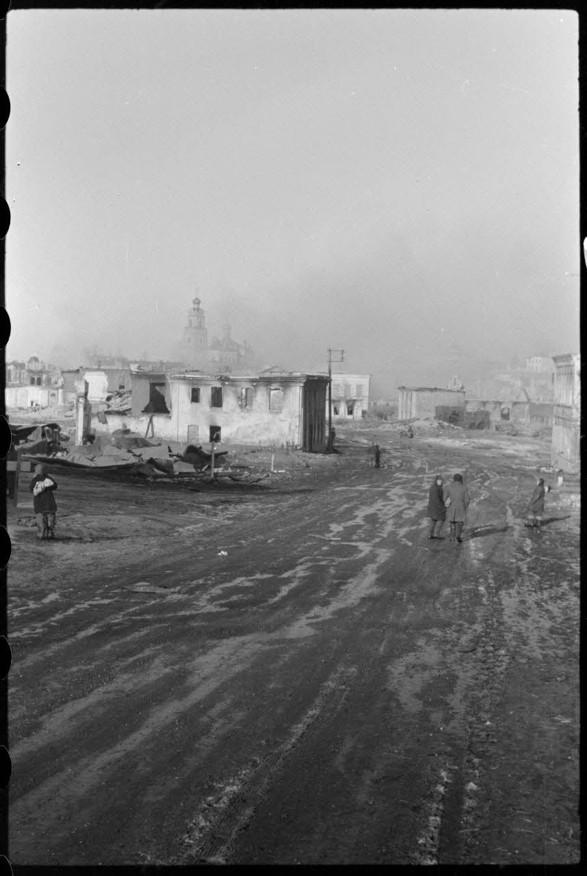 La ville Wjasma peu à avant le départ des troupes allemands, à l'arrière-plan la bibliothèque du front (Frontbuchhandlung).
