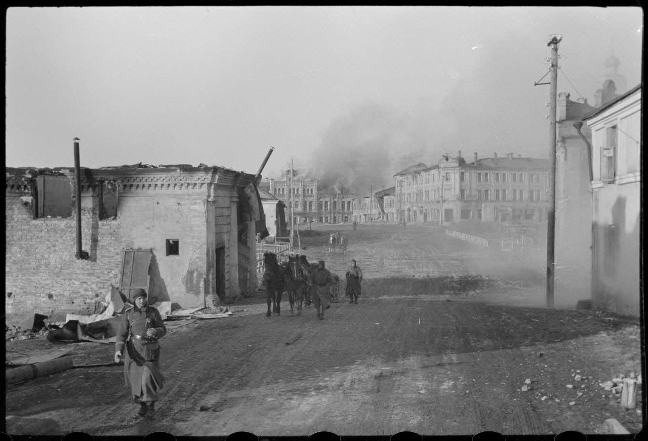 Le centre-ville de Wjasma (Viazma) durant la retraite allemande.