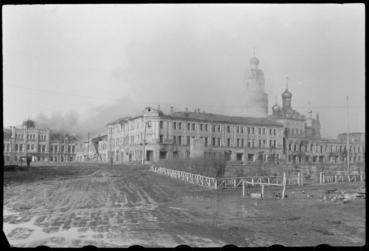 Le centre-ville de Wjasma (Viazma) durant la retraite allemande.